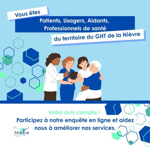 Cette enquête, qui sera accessible pendant un mois à compter du mardi 22 avril 2025, est disponible directement sur le site internet du Groupement Hospitalier de Territoire de la Nièvre, ainsi que sur les réseaux sociaux (Instagram, Facebook et LinkedIn) du Centre Hospitalier de l'Agglomération de Nevers.